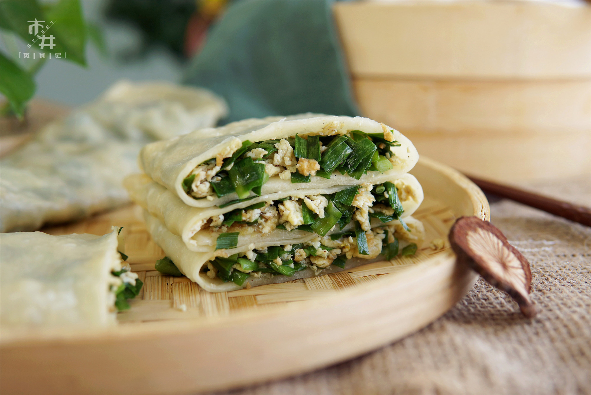 4、卷好後蓋上保鮮膜醒10分鐘,用擀麵杖擀成圓餅,放入平底鍋中,烙至兩面金黃即可
